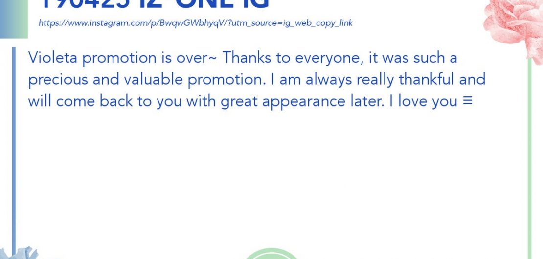 Article [TRANS] 190425 IZ*ONE Instagram Update with Yuri April 24, 2019April 24, 2019 by lnt294 [TRANS] 190425 IZ*ONE Instagram Update with Yuri Translated by: @eunbiz2703 of IZSUBS https://www.instagram.com/p/BwqwGWbhyqV/ Share this:Click to share on Twitter (Opens in new window)Click to share on Facebook (Opens in new window) Related [TRANS] 190424 IZ*ONE Instagram Update with Sakura [ENG SUB] 190311 IZ*ONE ENOZI Cam EP. 18