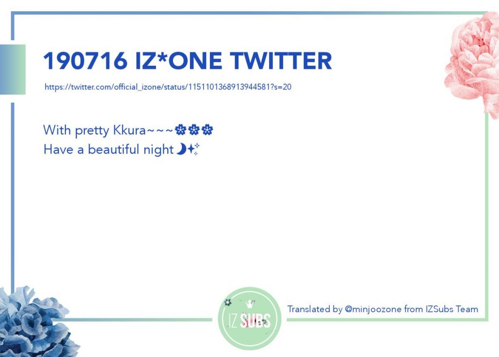 Article [TRANS] 190716 IZ*ONE Dream Twitter Update with Hyewon July 17, 2019July 17, 2019 by lnt294 [TRANS] 190716 IZ*ONE Dream Twitter Update with Hyewon Translated by: @minjoozone of IZSUBS https://twitter.com/official_izone/status/1151101368913944581?s=20 Share this:Click to share on Twitter (Opens in new window)Click to share on Facebook (Opens in new window) Related [TRANS] 190715 IZ*ONE Monday Fairy Instagram Update with Yena [ENG SUB] 190712【WIZ*ONE】IZ*ONE Exclusive Interview! So This Is How the Members See Each Other